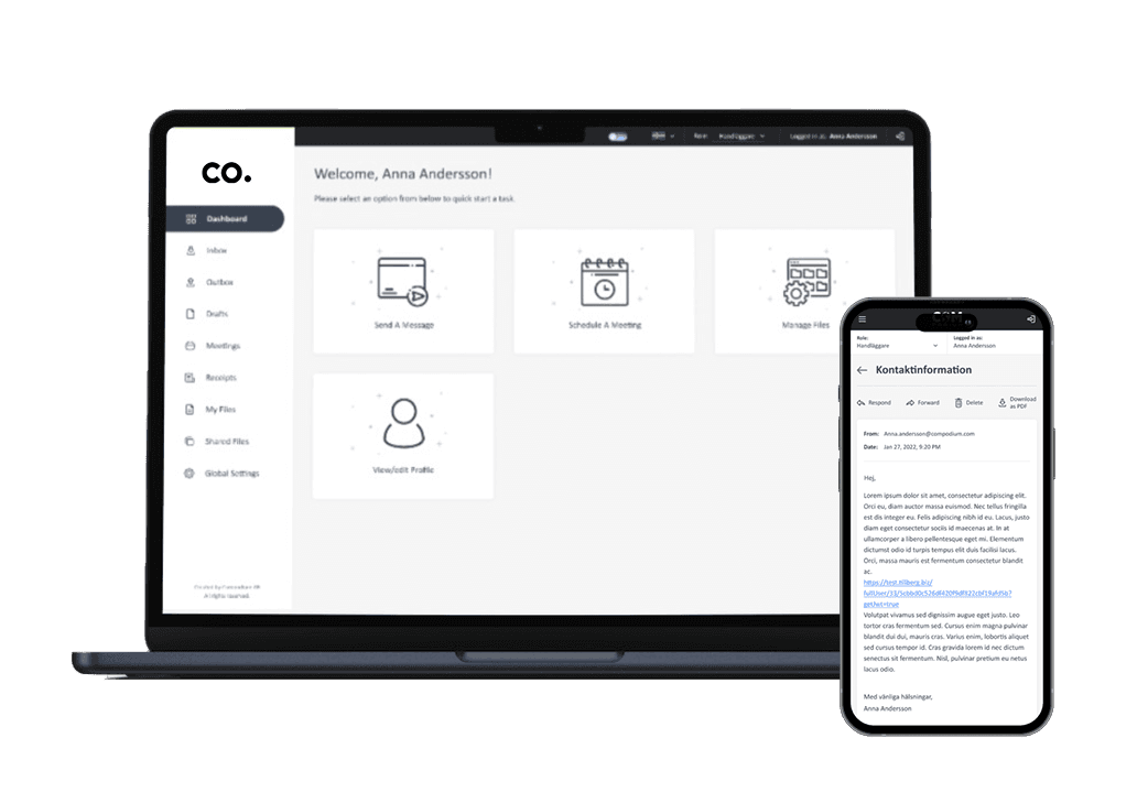 Compodiums tjänster uppfyller regulatoriska krav såsom GDPR eller OSL (offentlighets- och sekretesslagen), så att ni kan samarbeta smidigt och effektivt utan risk för att läcka information.